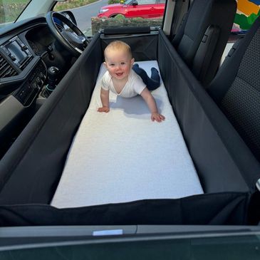 Here at the original Bespoke Vdubs, we take pride in designing and manufacturing high quality VW camper cab beds and cots, providing innovative sleep solutions for van life. As the only company in the UK producing cab cots for babies and toddlers, we prioritize safety and comfort with robust steel poles and high-quality durable fabric. Our cot mattresses meet British standards requirements, ensuring a secure and restful sleep for little ones. Designed for practicality and peace of mind, our products make camper living more enjoyable for the whole family.
